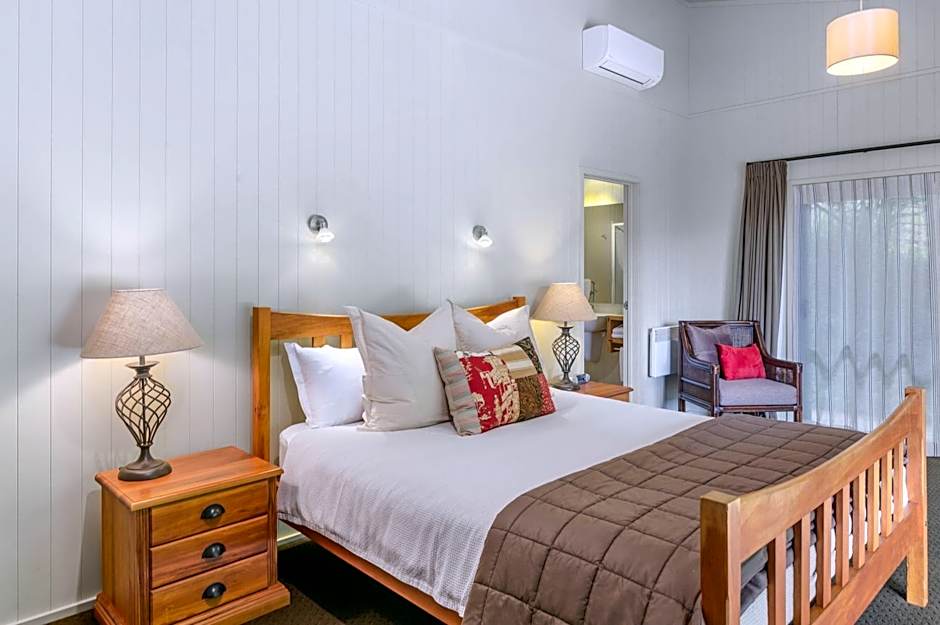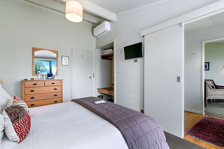 This suite features a bedroom with a king-sized bed. It also includes a lounge and a private private bathroom with bathrobes. The suite opens out onto a covered balcony with panoramic views of Lake Rotorua. Breakfast and WiFi are provided.